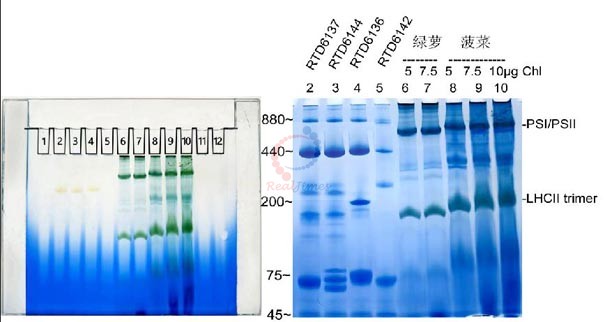 RTD6130或RTD6135)。如自備試劑,經(jīng)典Laemmli系統(tǒng)中把制膠溶液、電泳緩沖液和上樣緩沖液中的SDS和還原劑(DTT或β-巰基乙醇)全部去除即可進行非變性電泳。