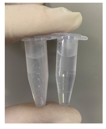 注:離心后白色蛋白沉淀彌散性可見于離心管管壁上。