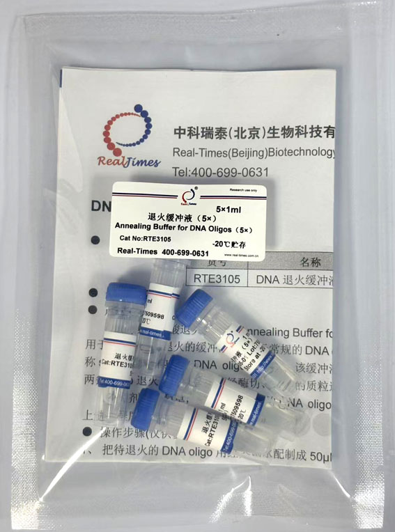 DNA寡核苷酸退火緩沖液(Annealing Buffer for DNA Oligos)簡稱為DNA退火緩沖液,是一種可用于DNA oligo退火的緩沖液,可用于常規(guī)的DNA oligo的退火,尤其適合于較難退火的用于RNAi (也稱siRNA)質(zhì)粒構(gòu)建的DNA oligo的退火。該緩沖液能有效避免DNA oligo自身形成發(fā)夾結(jié)構(gòu),并且兩條oligo退火后可以直接和經(jīng)酶切、純化的質(zhì)粒連接,轉(zhuǎn)化后可以得到大量的陽性克隆。