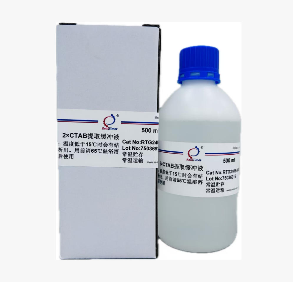 CTAB (hexadecyltrimethylammonium bromide,十六烷基三甲基溴化銨),是一種陽離子去污劑,具有從低離子強度溶液中沉淀核酸與酸性多聚糖的特性。在高離子強度的溶液中(>0.7 M NaCl) CTAB與蛋白質和多聚糖形成復合物而不沉淀核酸。通過有機溶劑抽提,去除蛋白、多糖、酚類等雜質后加入醇(乙醇或異丙醇)沉淀即可使核酸分離出來。