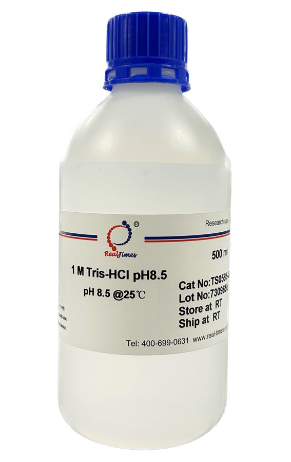 Tris(Tris(hydroxymethyl)methyl aminomethane)中文名稱為三羥甲基氨基甲烷,CAS#77-86-41,MW121.14,分子式:C4H11NO3,水溶液為弱堿,在常溫(25℃)下, pKa為8.1,Tris緩沖液的有效緩沖范圍在pH7.0到9.2之間。Tris堿的水溶液pH在10.5左右,一般加入鹽酸以調節(jié)pH值至所需值,即可獲得該pH值的緩沖液。Tris-HCl 緩沖液是分子生物學、細胞生物學等各種生化試驗中常用的緩沖試劑。本緩沖液采用進口原料配制而成,Tris終濃度為 1 mol/L和1.5 mol/L,已經調節(jié)至各種常用pH(25℃),經過高壓滅菌,便于儲存。本產品為儲存液,客戶可按照實驗要求用蒸餾水等對其做相應濃度稀釋,使用方便。