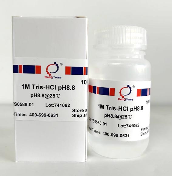 Tris(Tris(hydroxymethyl)methyl aminomethane)中文名稱為三羥甲基氨基甲烷,CAS#77-86-41,MW121.14,分子式:C4H11NO3,水溶液為弱堿,在常溫(25℃)下, pKa為8.1,Tris緩沖液的有效緩沖范圍在pH7.0到9.2之間。Tris堿的水溶液pH在10.5左右,一般加入鹽酸以調(diào)節(jié)pH值至所需值,即可獲得該pH值的緩沖液。Tris-HCl 緩沖液是分子生物學(xué)、細(xì)胞生物學(xué)等各種生化試驗(yàn)中常用的緩沖試劑。本緩沖液采用進(jìn)口原料配制而成,Tris終濃度為 1 mol/L和1.5 mol/L,已經(jīng)調(diào)節(jié)至各種常用pH(25℃),經(jīng)過高壓滅菌,便于儲存。本產(chǎn)品為儲存液,客戶可按照實(shí)驗(yàn)要求用蒸餾水等對其做相應(yīng)濃度稀釋,使用方便。